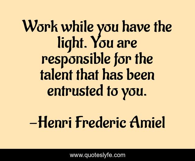 This page presents the quote "Work while you have the light. You are responsible for the talent that has been entrusted to you.". Author of this quote is Henri Frederic Amiel. This quote is about light, talent,.