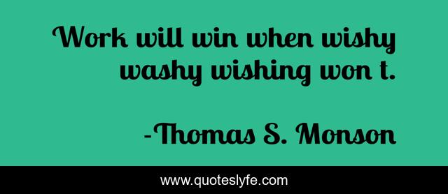 This page presents the quote "Work will win when wishy washy wishing won t.". Author of this quote is Thomas S. Monson. This quote is about win, t,.