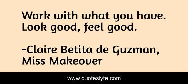 "Claire Betita de Guzman, Miss Makeover Quotes." Quoteslyfe.com, 2025. Sat. 06 Dec. 2025. <https://www.quoteslyfe.com/quote/Work-with-what-you-have-Look-good-106030>.