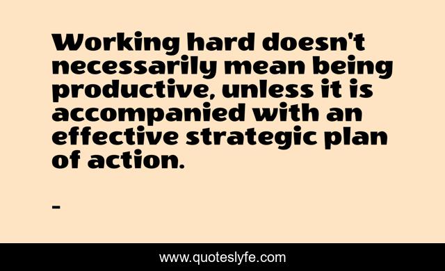 This page presents the quote "Working hard doesn't necessarily mean being productive, unless it is accompanied with an effective strategic plan of action.". Author of this quote is . This quote is about productivity, effective, hard-work, edmond-mbiaka, hardworking, plan-of-action, strategic, being-productive, plan,.