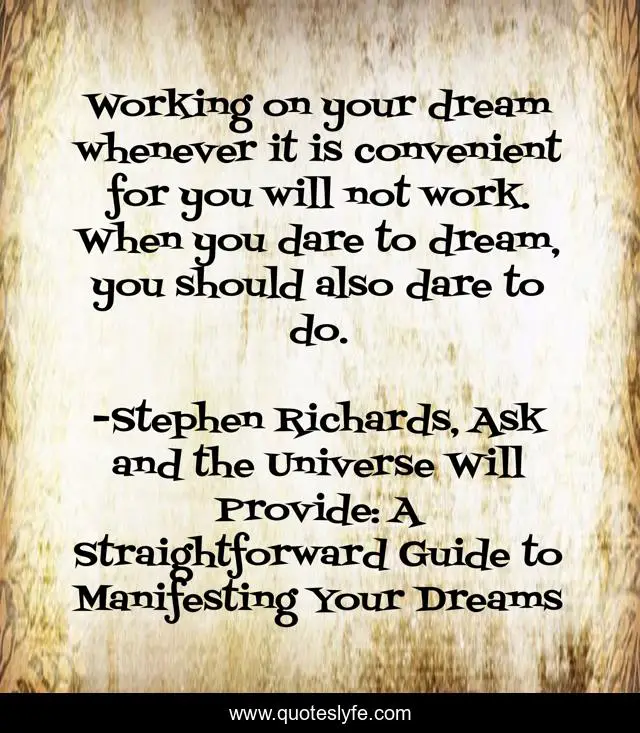 "Stephen Richards, Ask and the Universe Will Provide: A Straightforward Guide to Manifesting Your Dreams Quotes." Quoteslyfe.com, 2025. Mon. 08 Dec. 2025. <https://www.quoteslyfe.com/quote/Working-on-your-dream-whenever-it-is-44789>.