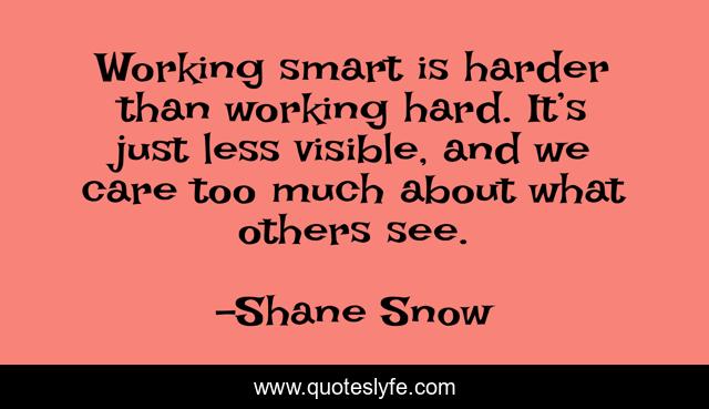 This page presents the quote "Working smart is harder than working hard. It’s just less visible, and we care too much about what others see.". Author of this quote is Shane Snow. This quote is about smartcuts, hard-work,.