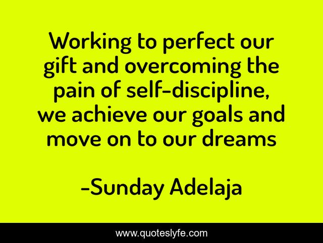 This page presents the quote "Working to perfect our gift and overcoming the pain of self-discipline, we achieve our goals and move on to our dreams". Author of this quote is Sunday Adelaja. This quote is about perfect, pain, hard-work, self, work, perfection, overcome,.