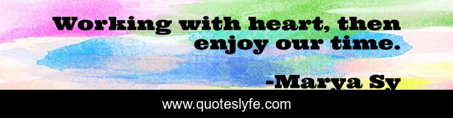 This page presents the quote "Working with heart, then enjoy our time.". Author of this quote is Marya Sy. .