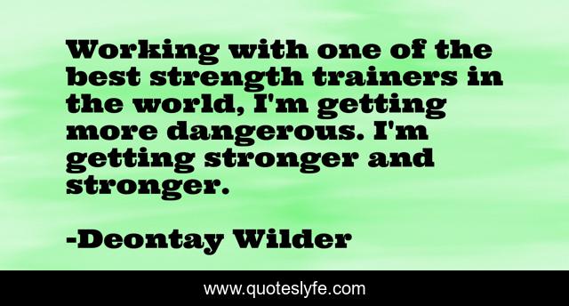 This page presents the quote "Working with one of the best strength trainers in the world, I'm getting more dangerous. I'm getting stronger and stronger.". Author of this quote is Deontay Wilder. This quote is about world, stronger, best,.