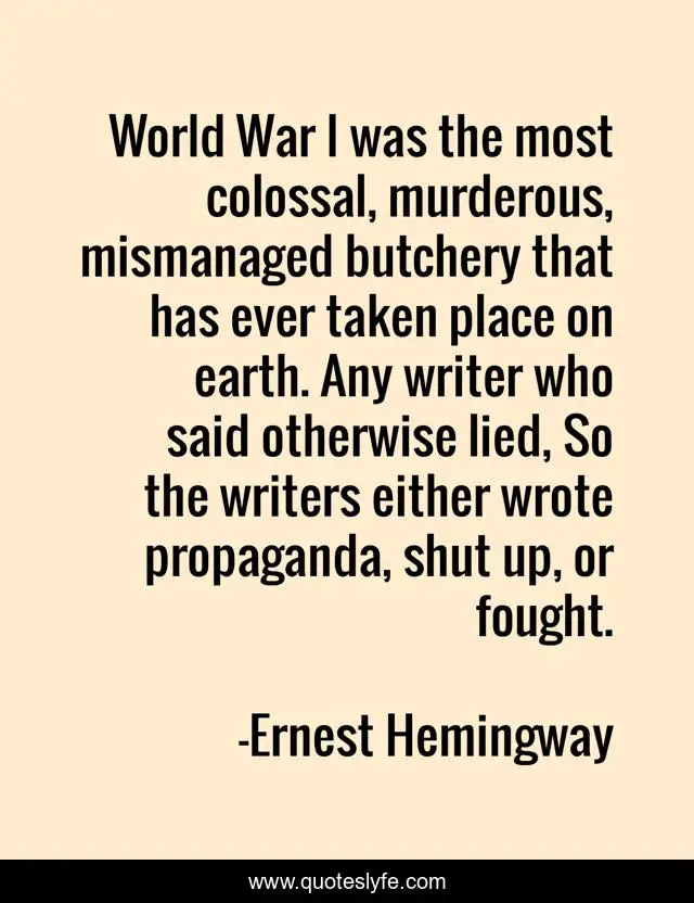 World War I was the most colossal, murderous, mismanaged butchery that has ever taken place on earth. Any writer who said otherwise lied, So the writers either wrote propaganda, shut up, or fought.