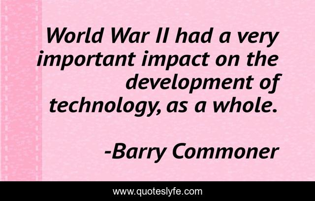 This page presents the quote "World War II had a very important impact on the development of technology, as a whole.". Author of this quote is Barry Commoner. This quote is about impact, world, technology,.