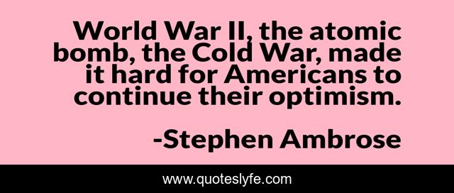 This page presents the quote "World War II, the atomic bomb, the Cold War, made it hard for Americans to continue their optimism.". Author of this quote is Stephen Ambrose. This quote is about world, optimism,.