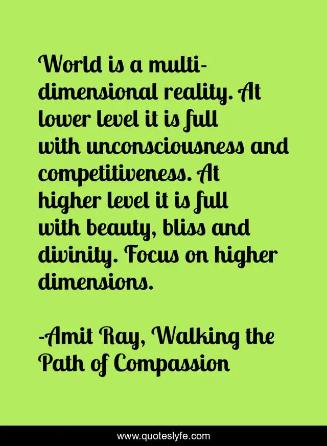 "Amit Ray, Walking the Path of Compassion Quotes." Quoteslyfe.com, 2025. Fri. 05 Dec. 2025. <https://www.quoteslyfe.com/quote/World-is-a-multi-dimensional-reality-At-61371>.