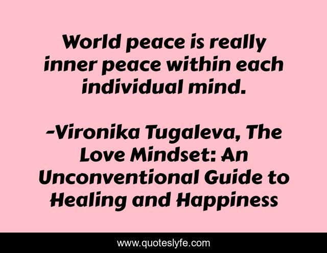 This page presents the quote "World peace is really inner peace within each individual mind.". Author of this quote is Vironika Tugaleva, The Love Mindset: An Unconventional Guide to Healing and Happiness. This quote is about world-peace, inner-peace, mindset,.