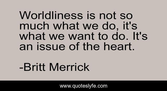 This page presents the quote "Worldliness is not so much what we do, it's what we want to do. It's an issue of the heart.". Author of this quote is Britt Merrick. This quote is about enthusiasm, christian-life, inspirational,.