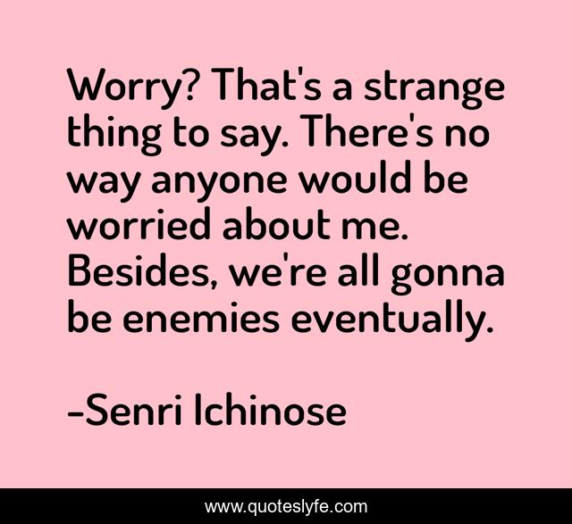 "Senri Ichinose Quotes." Quoteslyfe.com, 2025. Sat. 06 Dec. 2025. <https://www.quoteslyfe.com/quote/Worry-That-s-a-strange-thing-to-157188>.