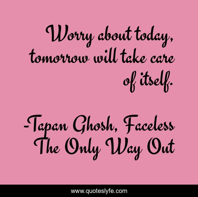 "Tapan Ghosh, Faceless The Only Way Out Quotes." Quoteslyfe.com, 2025. Sat. 06 Dec. 2025. <https://www.quoteslyfe.com/quote/Worry-about-today-tomorrow-will-take-care-57521>.