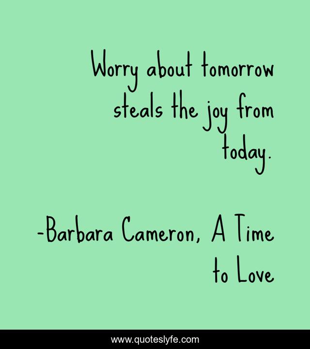 "Barbara Cameron, A Time to Love Quotes." Quoteslyfe.com, 2025. Mon. 08 Dec. 2025. <https://www.quoteslyfe.com/quote/Worry-about-tomorrow-steals-the-joy-from-208968>.