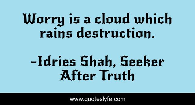 "Idries Shah, Seeker After Truth Quotes." Quoteslyfe.com, 2025. Mon. 08 Dec. 2025. <https://www.quoteslyfe.com/quote/Worry-is-a-cloud-which-rains-destruction-87785>.