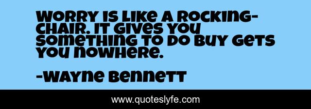 This page presents the quote "Worry is like a rocking-chair. It gives you something to do buy gets you nowhere.". Author of this quote is Wayne Bennett. .