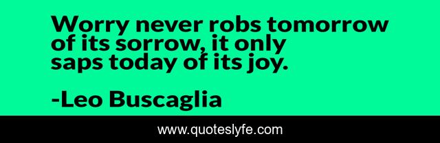 This page presents the quote "Worry never robs tomorrow of its sorrow, it only saps today of its joy.". Author of this quote is Leo Buscaglia. .