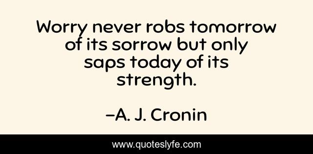 This page presents the quote "Worry never robs tomorrow of its sorrow but only saps today of its strength.". Author of this quote is A. J. Cronin. .