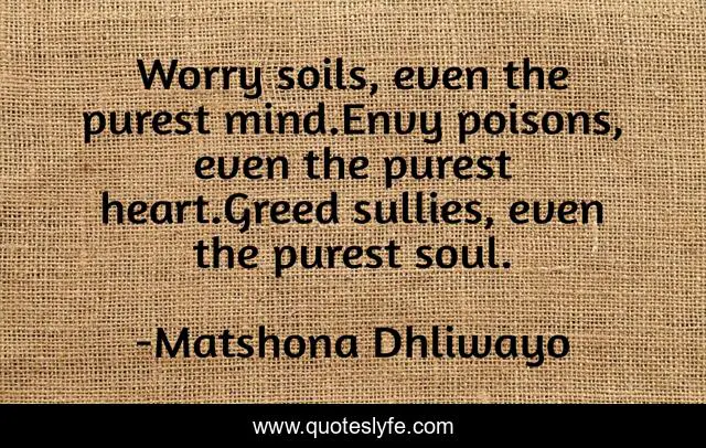 "Matshona Dhliwayo Quotes." Quoteslyfe.com, 2025. Mon. 08 Dec. 2025. <https://www.quoteslyfe.com/quote/Worry-soils-even-the-purest-mind-Envy-15403>.
