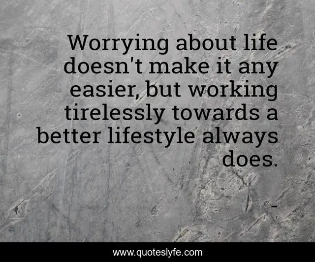 This page presents the quote "Worrying about life doesn't make it any easier, but working tirelessly towards a better lifestyle always does.". Author of this quote is . This quote is about working-tirelessly, lifestyle, edmond-mbiaka, work-tirelessly, working-for-a-better-life, living-a-better-life, worrying, worry,.