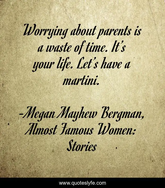 This page presents the quote "Worrying about parents is a waste of time. It’s your life. Let’s have a martini.". Author of this quote is Megan Mayhew Bergman, Almost Famous Women: Stories. This quote is about life-philosophy, alcohol,.