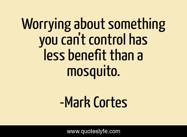 This page presents the quote "Worrying about something you can’t control has less benefit than a mosquito.". Author of this quote is Mark Cortes. This quote is about stress, worry,.