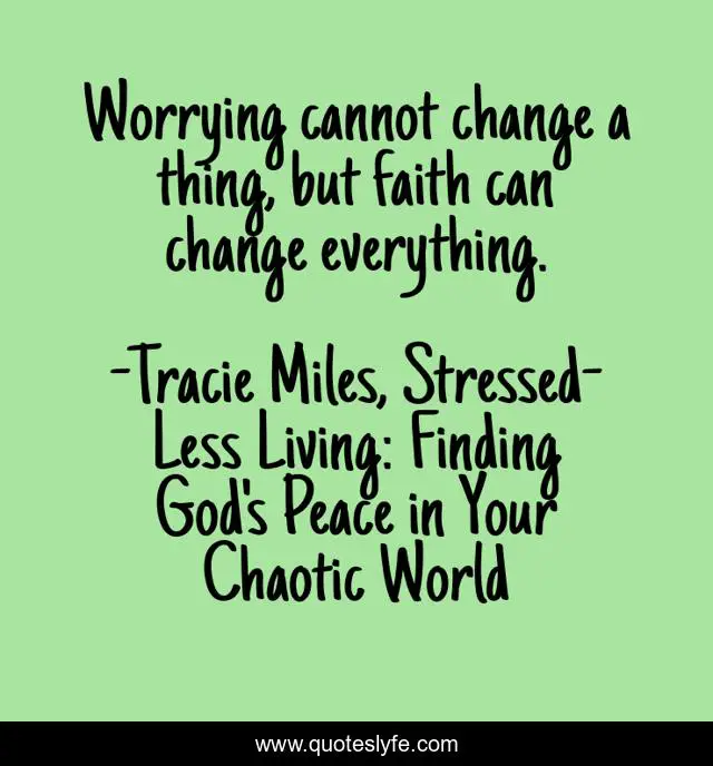 "Tracie Miles, Stressed-Less Living: Finding God's Peace in Your Chaotic World Quotes." Quoteslyfe.com, 2025. Fri. 05 Dec. 2025. <https://www.quoteslyfe.com/quote/Worrying-cannot-change-a-thing-but-faith-239500>.