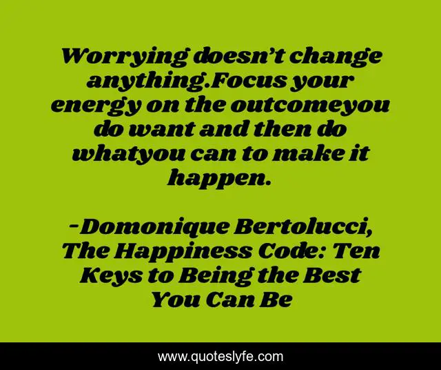 "Domonique Bertolucci, The Happiness Code: Ten Keys to Being the Best You Can Be Quotes." Quoteslyfe.com, 2025. Sat. 06 Dec. 2025. <https://www.quoteslyfe.com/quote/Worrying-doesn-t-change-anything-Focus-your-215355>.