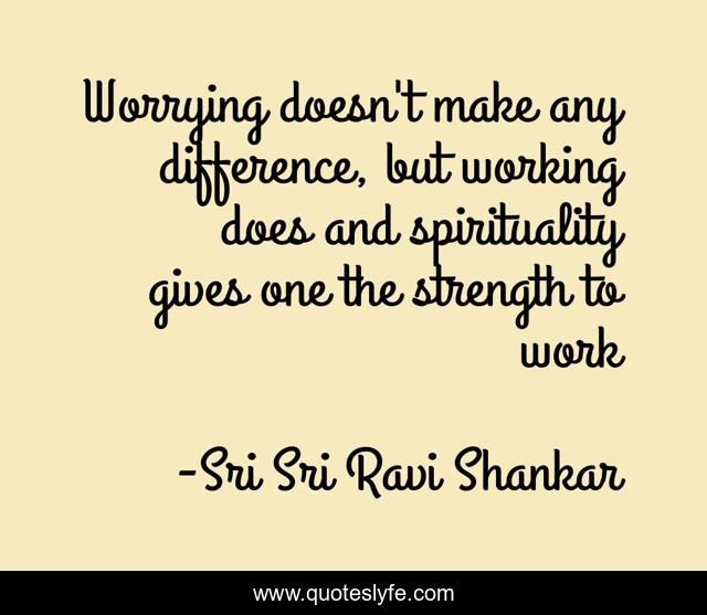 This page presents the quote "Worrying doesn't make any difference, but working does and spirituality gives one the strength to work". Author of this quote is Sri Sri Ravi Shankar. This quote is about spirituality, worrying, worry,.