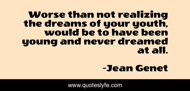 This page presents the quote "Worse than not realizing the dreams of your youth, would be to have been young and never dreamed at all.". Author of this quote is Jean Genet. This quote is about youth, young,.