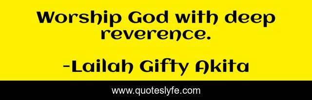 This page presents the quote "Worship God with deep reverence.". Author of this quote is Lailah Gifty Akita. This quote is about church, confidence, christian, god, motivational, optimistic, positive, hymns, singing,.