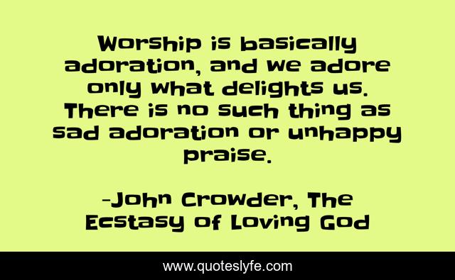 This page presents the quote "Worship is basically adoration, and we adore only what delights us. There is no such thing as sad adoration or unhappy praise.". Author of this quote is John Crowder, The Ecstasy of Loving God. This quote is about adoration, religion, delight, worhip, sadness, praise, happiness,.