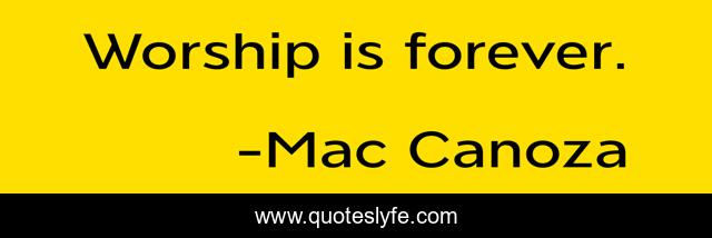 This page presents the quote "Worship is forever.". Author of this quote is Mac Canoza. This quote is about church-leaders, forever, jesus, worship-leading, spirituality, leadership, christianity, worship,.