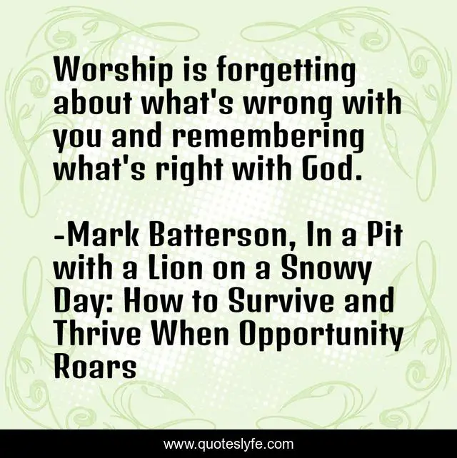 "Mark Batterson, In a Pit with a Lion on a Snowy Day: How to Survive and Thrive When Opportunity Roars Quotes." Quoteslyfe.com, 2025. Fri. 05 Dec. 2025. <https://www.quoteslyfe.com/quote/Worship-is-forgetting-about-what-s-wrong-193984>.