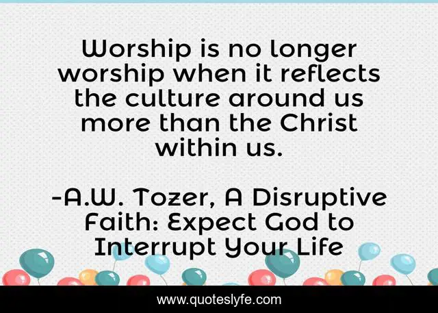 "A.W. Tozer, A Disruptive Faith: Expect God to Interrupt Your Life Quotes." Quoteslyfe.com, 2025. Fri. 05 Dec. 2025. <https://www.quoteslyfe.com/quote/Worship-is-no-longer-worship-when-it-193892>.