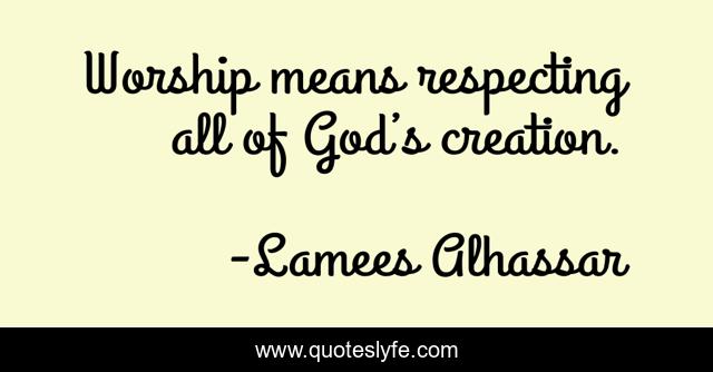 This page presents the quote "Worship means respecting all of God’s creation.". Author of this quote is Lamees Alhassar. This quote is about inspirational-life, lamees, lamees-alhassar,.
