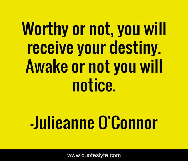 "Julieanne O'Connor Quotes." Quoteslyfe.com, 2025. Fri. 05 Dec. 2025. <https://www.quoteslyfe.com/quote/Worthy-or-not-you-will-receive-your-96938>.