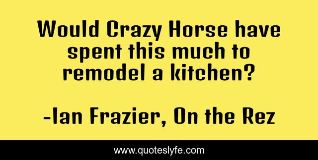 This page presents the quote "Would Crazy Horse have spent this much to remodel a kitchen?". Author of this quote is Ian Frazier, On the Rez. This quote is about philosophy, humor, native-americans,.
