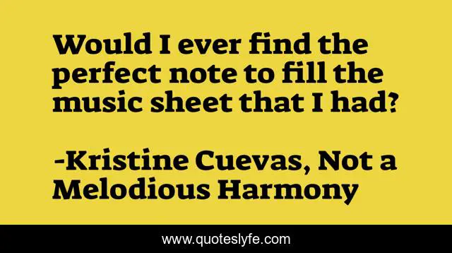 "Kristine Cuevas, Not a Melodious Harmony Quotes." Quoteslyfe.com, 2025. Fri. 05 Dec. 2025. <https://www.quoteslyfe.com/quote/Would-I-ever-find-the-perfect-note-249756>.