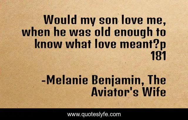 This page presents the quote "Would my son love me, when he was old enough to know what love meant?p 181". Author of this quote is Melanie Benjamin, The Aviator's Wife. .
