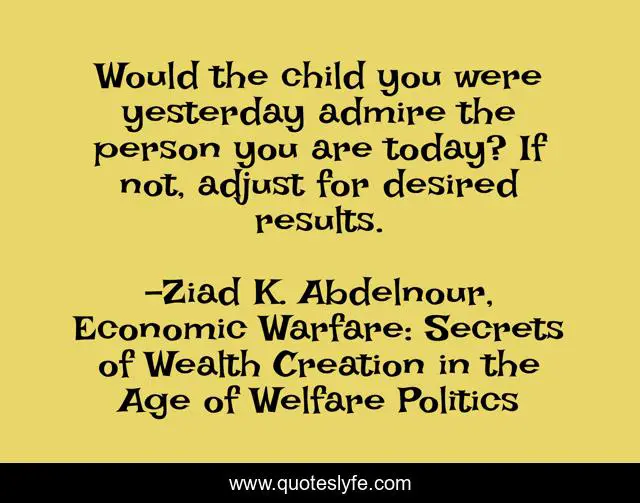 "Ziad K. Abdelnour, Economic Warfare: Secrets of Wealth Creation in the Age of Welfare Politics Quotes." Quoteslyfe.com, 2025. Mon. 08 Dec. 2025. <https://www.quoteslyfe.com/quote/Would-the-child-you-were-yesterday-admire-233313>.