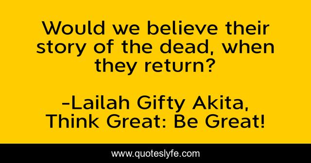"Lailah Gifty Akita, Think Great: Be Great! Quotes." Quoteslyfe.com, 2025. Sat. 06 Dec. 2025. <https://www.quoteslyfe.com/quote/Would-we-believe-their-story-of-the-169170>.