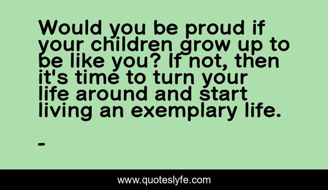 This page presents the quote "Would you be proud if your children grow up to be like you? If not, then it's time to turn your life around and start living an exemplary life.". Author of this quote is . This quote is about living-an-examplary-life, edmond-mbiaka, be-a-positive, be-a-role-model, turn-your-life-around-for-better, an-exemplary-life,.