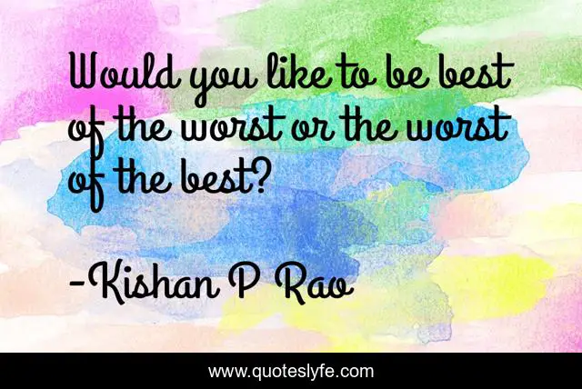 This page presents the quote "Would you like to be best of the worst or the worst of the best?". Author of this quote is Kishan P Rao. This quote is about philosophical, psychology, choices,.