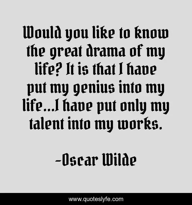This page presents the quote "Would you like to know the great drama of my life? It is that I have put my genius into my life...I have put only my talent into my works.". Author of this quote is Oscar Wilde. This quote is about oscar, wilde, writing,.