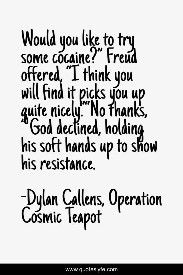"Dylan Callens, Operation Cosmic Teapot Quotes." Quoteslyfe.com, 2025. Sat. 06 Dec. 2025. <https://www.quoteslyfe.com/quote/Would-you-like-to-try-some-cocaine-212810>.