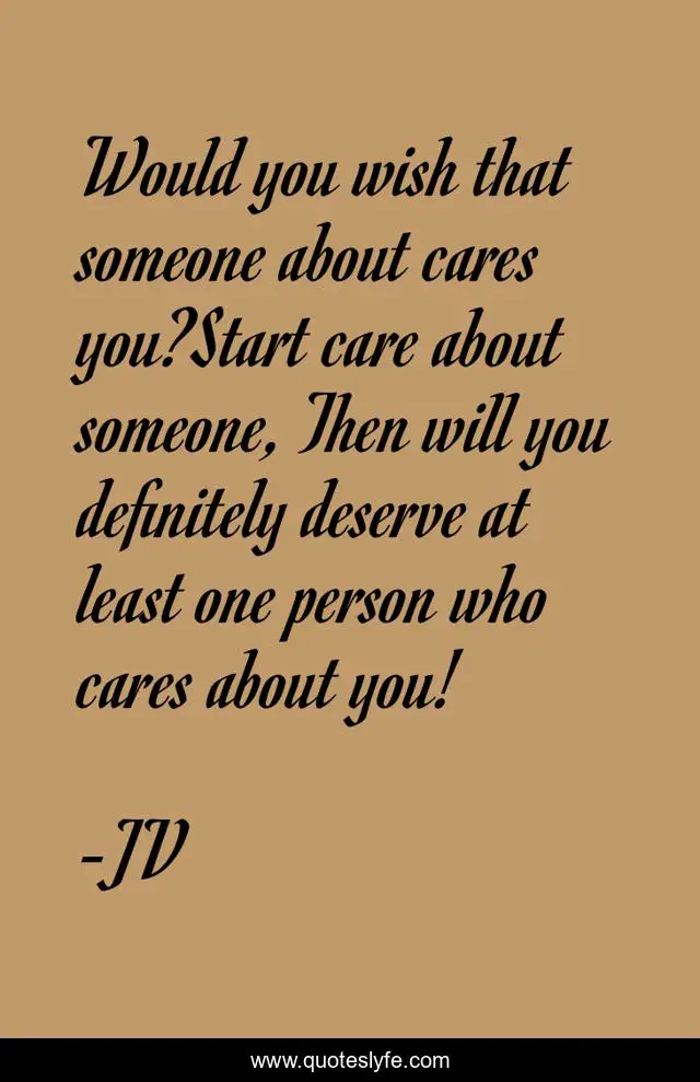 This page presents the quote "Would you wish that someone about cares you?Start care about someone, Then will you definitely deserve at least one person who cares about you!". Author of this quote is JV. .