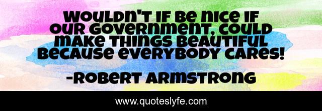 This page presents the quote "Wouldn't if be nice if our government, could make things beautiful because everybody cares!". Author of this quote is Robert Armstrong. .