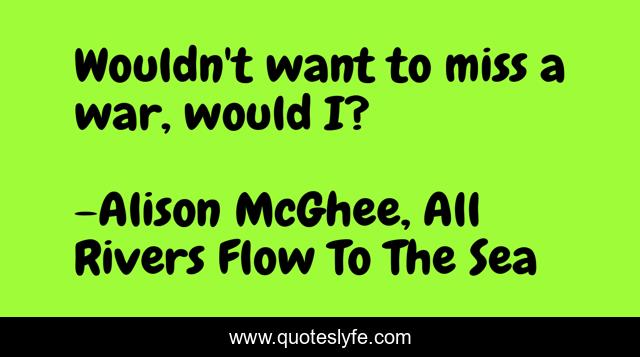 "Alison McGhee, All Rivers Flow To The Sea Quotes." Quoteslyfe.com, 2025. Mon. 08 Dec. 2025. <https://www.quoteslyfe.com/quote/Wouldn-t-want-to-miss-a-war-52286>.