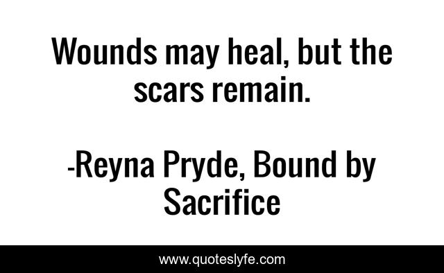 "Reyna Pryde, Bound by Sacrifice Quotes." Quoteslyfe.com, 2025. Tue. 09 Dec. 2025. <https://www.quoteslyfe.com/quote/Wounds-may-heal-but-the-scars-remain-132396>.